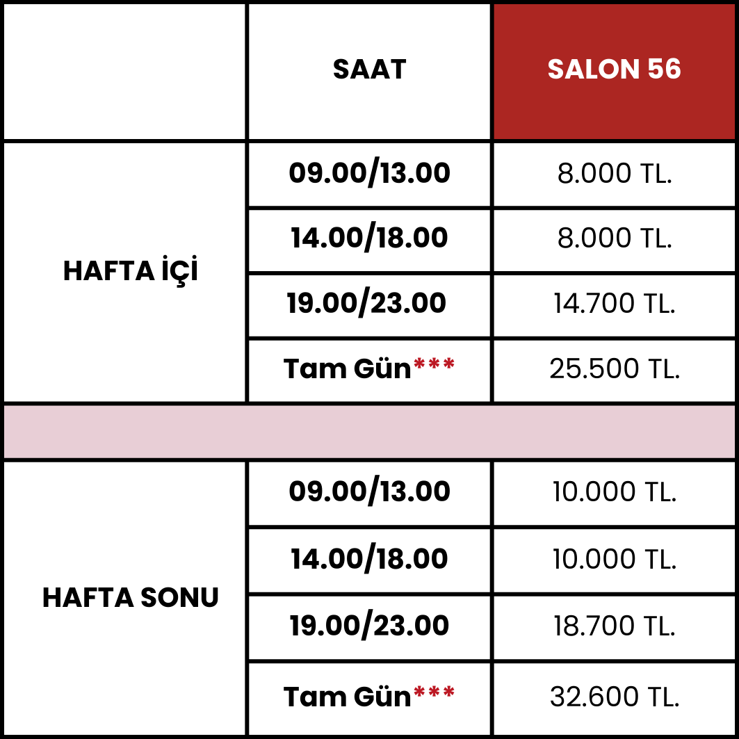 Yemekli düzende : 40 kişi (U masa iç-dış oturumlu)